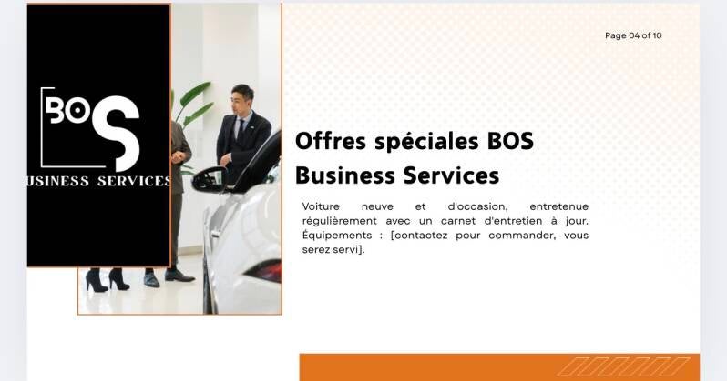 BOS BUSINESS SERVICES est né d'une passion pour l'excellence et d'un désir d'aider les autres à réussir. Notre équipe de professionnels dévoués met son expertise à votre service pour vous offrir des solutions sur mesure et un accompagnement personnalisé dans les domaines de l'e-commerce, de l'immobilier et du développement personnel.